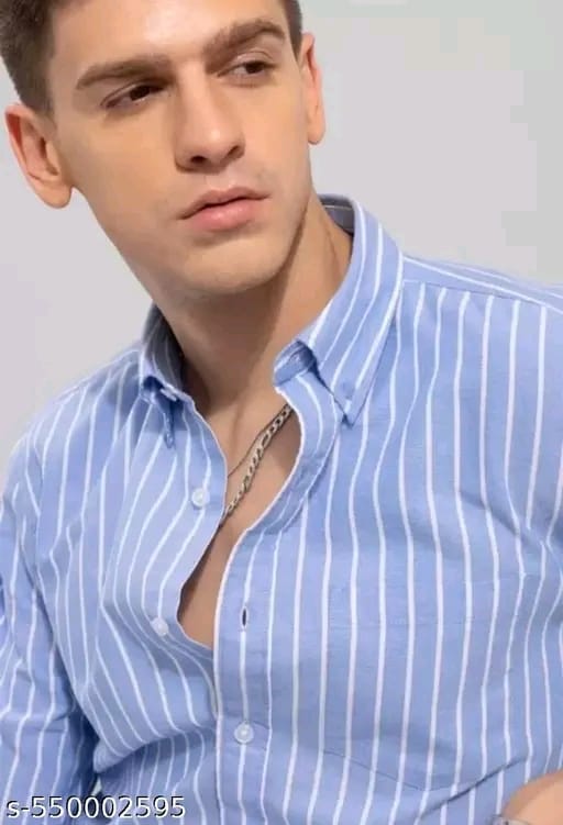 Men’s Light Blue Vertical Striped Slim Fit Shirt | Stylish Casual Cotton Blend Shirt for Men